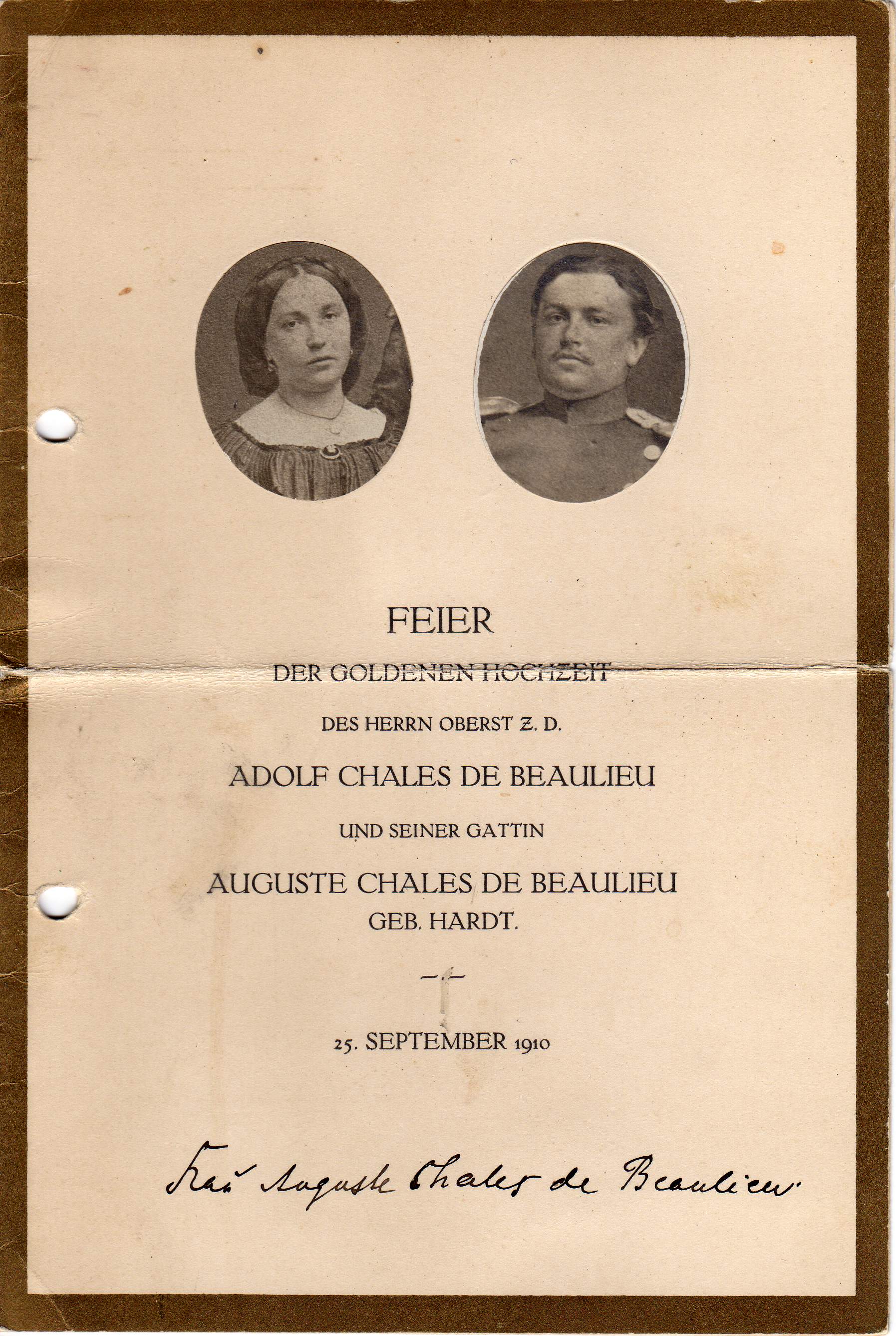 Ils avaient eu deux fils, François le 1er avril 1709 et Jean-Charles en décembre 1715. Mineurs à la mort de leurs parents et résidant dans une zone où les catholiques étaient majoritaires, ils ont été confiés à une famille sous la tutelle d’un prêtre catholique, l’abbé Huguenin. Tous deux ont fait souche en Prusse orientale et leurs descendants sont rapidement retournés à la religion réformée. Par le jeu des alliances, plusieurs de leurs descendants sont devenus de typiques hobereaux léguant leurs vastes propriétés à leur fils ainé et poussant leurs cadets vers la carrière militaire ou l’administration. On aura remarqué que, sans doute suite à une erreur d’écriture, tous les descendants s’appellent Chales de Beaulieu – forme totalement inconnue en France – mais que mon père a profité de sa naturalisation pour revenir au patronyme d’origine.