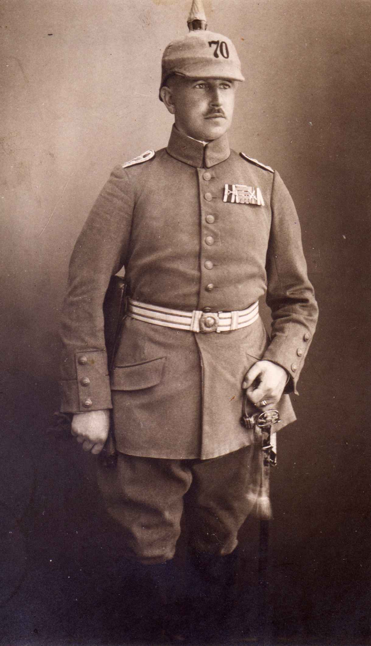 Il a chargé et a été blessé à Gravelotte avec son régiment de Uhlans et y a gagné la Croix de fer ; sa sœur Marianne y avait perdu son fiancé et ne se maria jamais. Les archives familiales contiennent une pile de documents, signés par le Roi de Prusse puis l’Empereur d’Allemagne, attestant ses promotions (il deviendra colonel) mais leur principal intérêt réside dans leur remarquable graphisme. On relève au passage qu’il a reçu en 1871 une médaille du souvenir réalisée avec le bronze des canons pris aux Français et, en 1887, une croix du Mérite de 3e classe remise « pour services spéciaux » par la Régente d’Espagne. Mais nul n’a gardé le souvenir de la nature de ces services spéciaux.